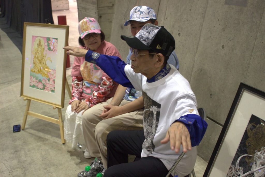 日本の漫画界からもレジェンドたちが会場へやってきた。リングステージエリアで開催された「TOKYO MX presents 「着る」漫画家による仏の世界展」にあわせ、漫画家のバロン吉元さん、いがらしゆみこさんが駆けつけ、ディレクションを務めたTOKYO MXプロデューサー・哘誠さんをMCに、トークショーを開催した。その模様はこちらの記事から。