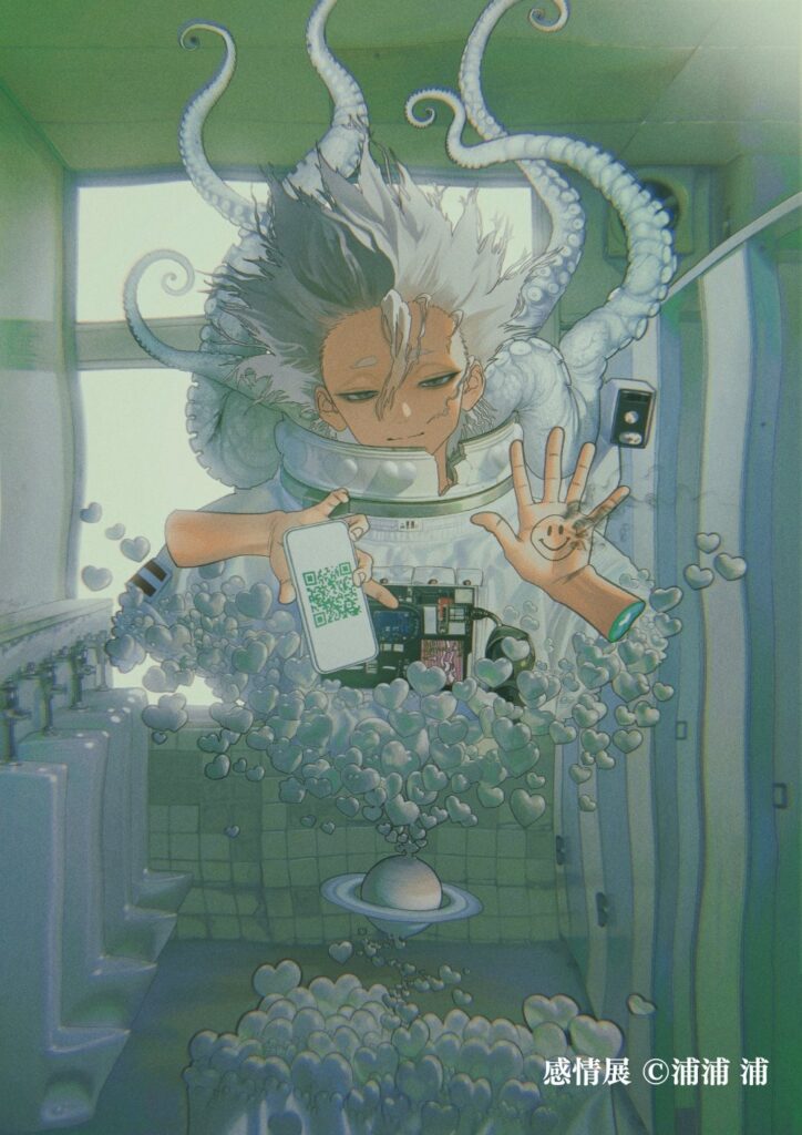 私自身、普段から絵を描く際はかなり感情を意識して描くタイプです。テーマで頂いていた「複雑な感情」も、私の作風を見て頂いたお話だと思うので、いつも通り描かせて頂きました。ただ、こうした大規模なミュージアムでイラストレーションを観る機会ってなかなか無いと思うので、イラストがこれからもっと身近な芸術活動として広まっていけば嬉しいです。
